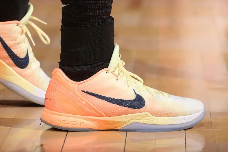 比赛中,布伦森上脚Nike Kobe 6 Protro“Sunrise”PE。